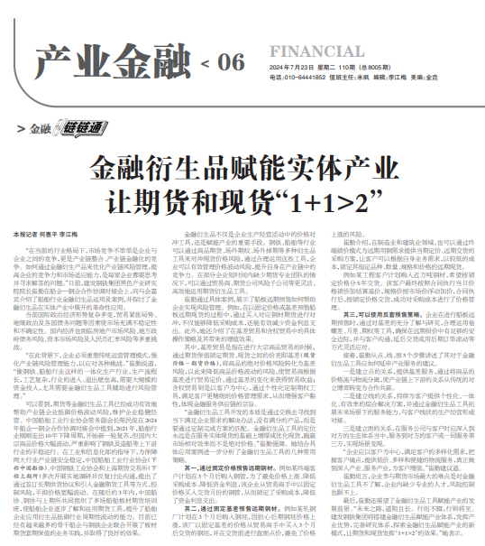 中國(guó)冶金報(bào) | 金融衍生品賦能實(shí)體產(chǎn)業(yè)讓期貨和現(xiàn)貨“1+1>2